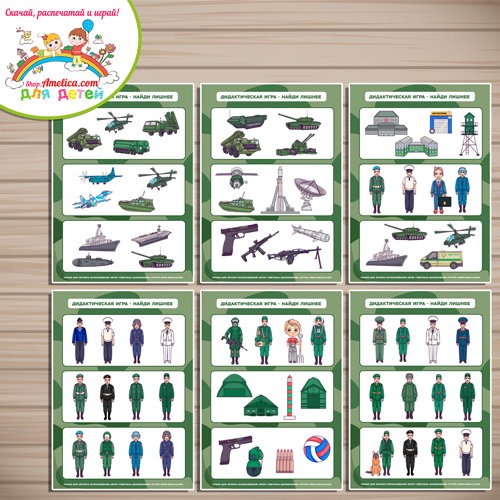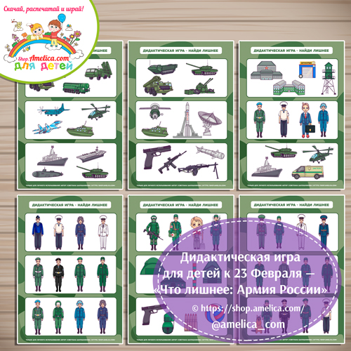 Дидактический игра на 23 Февраля «Что лишнее — Армия России» скачать для печати