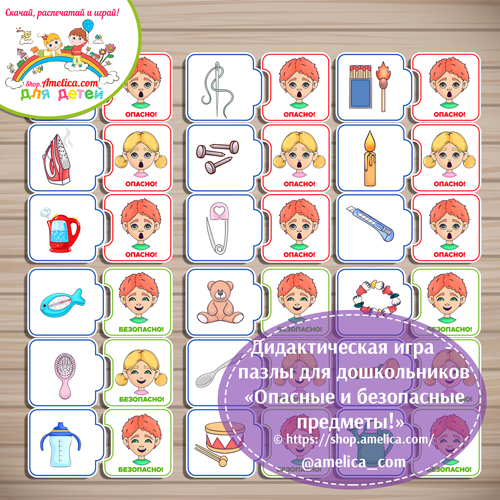 Дидактическая игра, пазлы — сортировка «Опасные и безопасные предметы»