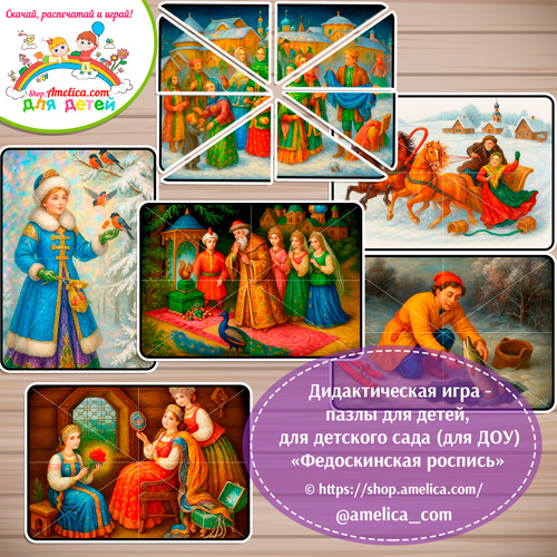 Дидактическая игра — пазлы для детей, для детского сада (ДОУ) «Собери картинку — Федоскинская роспись (федоскинская миниатюра)»