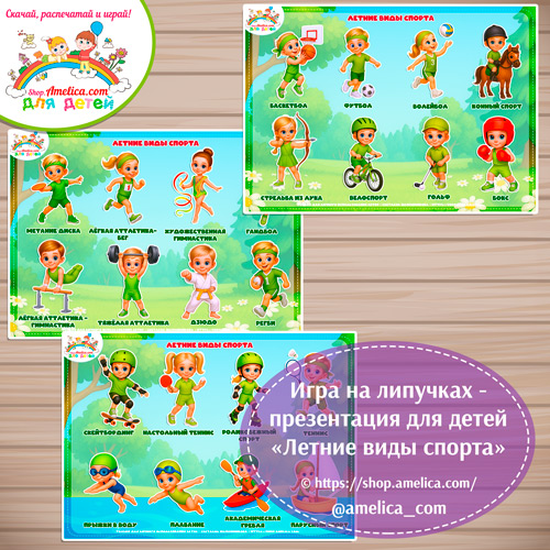 Дидактическая игра — презентация «Летние виды спорта» скачать для распечатки
