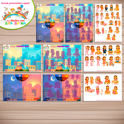 Игра — презентация для дошкольников «Режим дня (распорядок дня) девочки» формат А4 и А3 скачать и распечатать