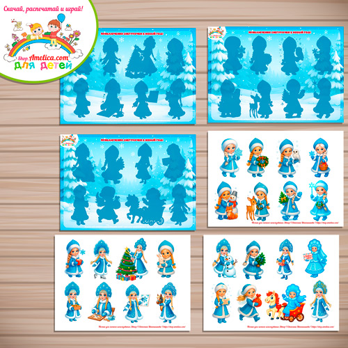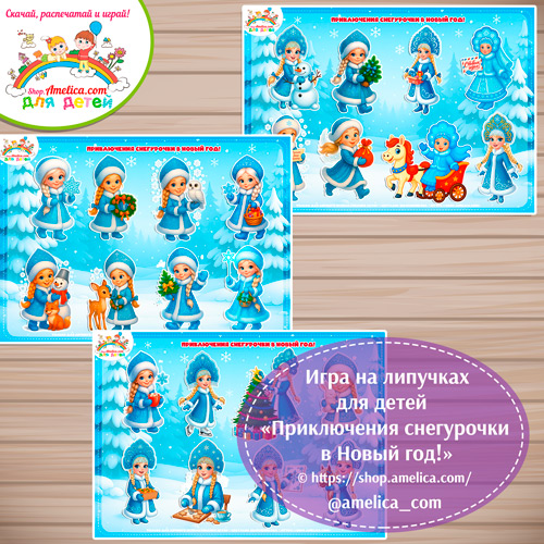 Новогодняя игра на липучках для детей «Приключения снегурочки в Новый год!» шаблон скачать для печати