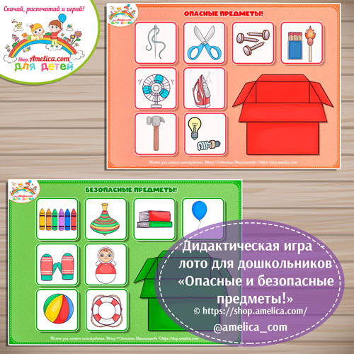 Дидактическая игра, лото — сортировка «Опасные и безопасные предметы»» для детей.