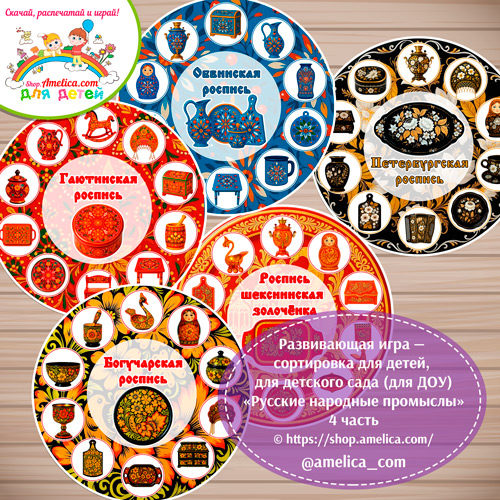Дидактическая игра — сортировка на липучках «Русские народные промыслы» — часть 4 скачать для распечатки