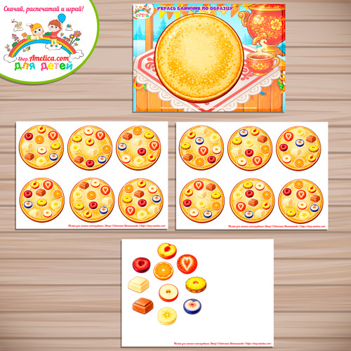 Дидактическая игра на Масленицу для детей «Укрась блинчик по образцу!» — 2 вариант