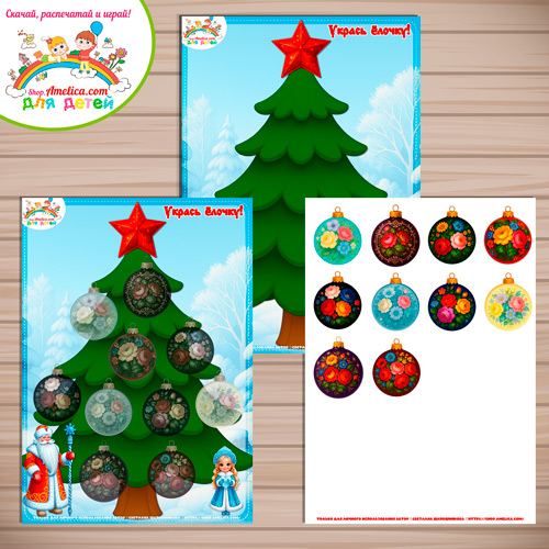 Новогодняя дидактическая игра на липучках «Укрась ёлочку - жостовская роспись»