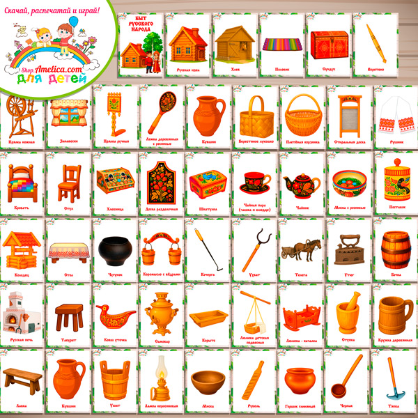 Карточки Быт русского народа скачать, Быт русского народа карточки с названием, картинки Быт русского народа для детей, игры про Быт русского народа для детей, карточки Русский народный быт скачать, наглядный  материал Быт русского народа распечатать, Быт русского народа картинки для детей распечатать