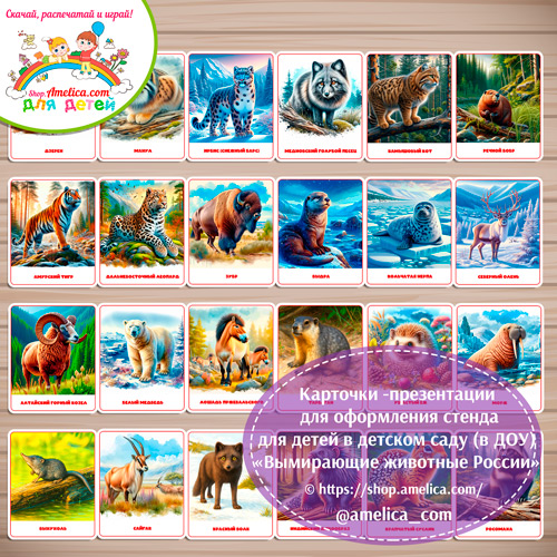 Демонстрационные карточки — презентации для оформления стенда для детского сада «Вымирающие животные России»