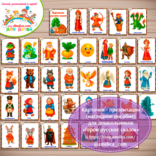 Карточки — презентации (наглядное пособие) «Герои русских сказок» для детей скачать