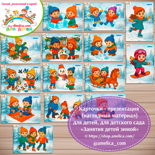 Карточки — презентация (наглядный материал) для дошкольников «Занятия детей зимой»Карточки — презентация (наглядный материал) для дошкольников «Занятия детей зимой»