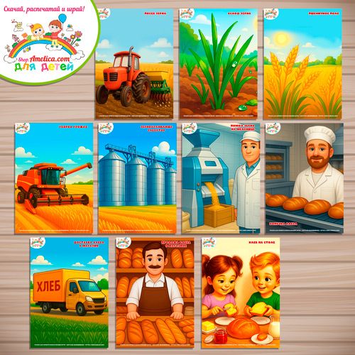Данный набор содержит 15 карточек с иллюстрациями на тему — Как сейчас выращивают хлеб.