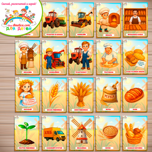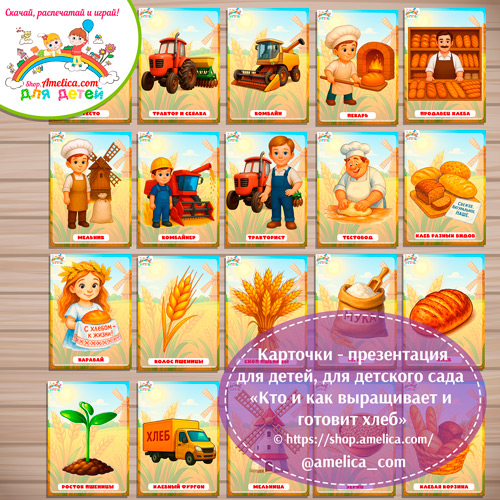 Карточки — презентации (наглядное пособие) «Кто и как производит хлеб» для детей скачать