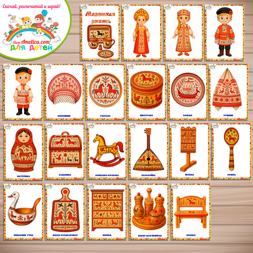 Данный набор содержит 20 карточек и обложка с иллюстрациями на тему — Мезенская роспись.