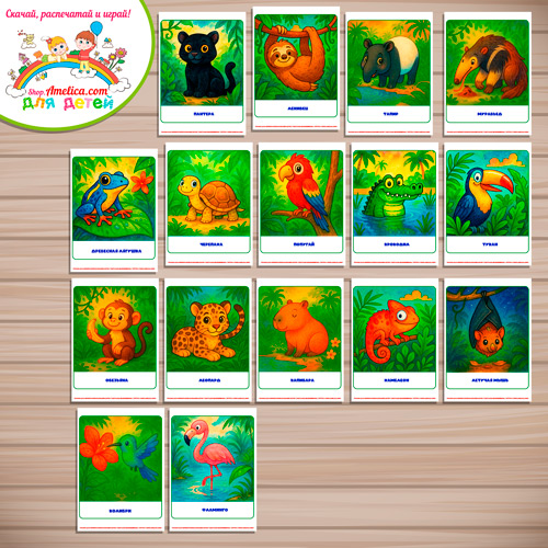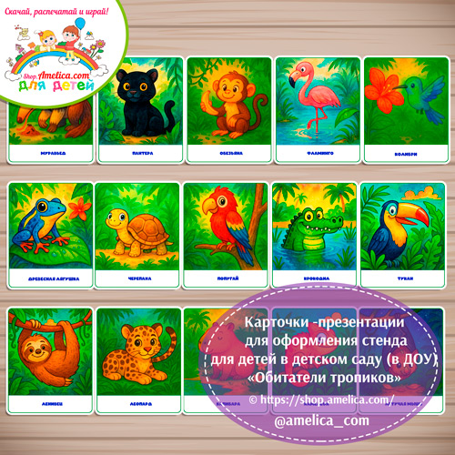 Демонстрационные карточки — презентации для оформления стенда для детского сада «Обитатели тропиков»