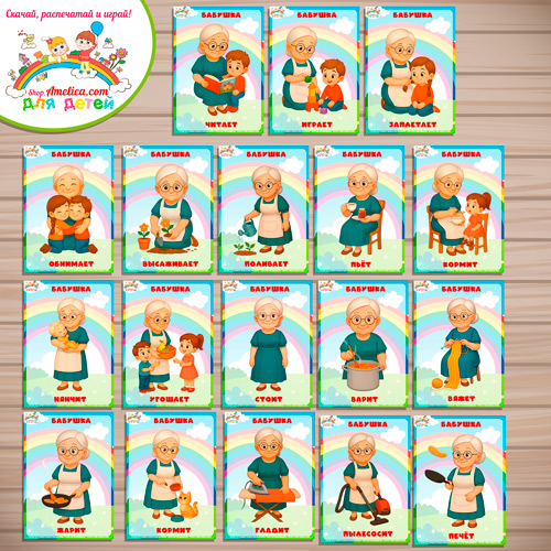 Карточки — презентации (наглядное пособие) «Что делает бабушка (глаголы, действия)» для детей скачать