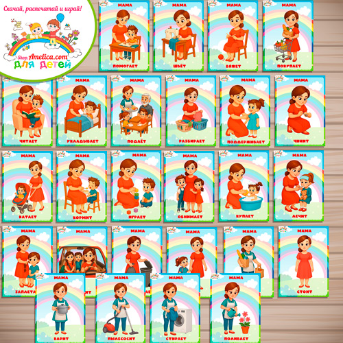 Карточки — презентации (наглядное пособие) «Что делает мама (глаголы, действия)» для детей скачать