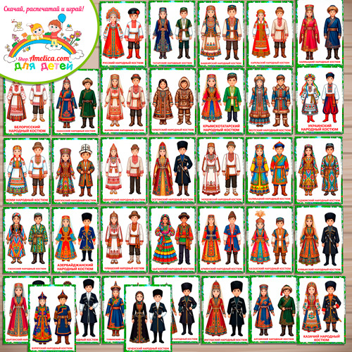 Карточки — презентации (наглядное пособие) «Народы России (35 национальностей России)» для детей скачать