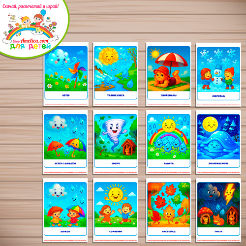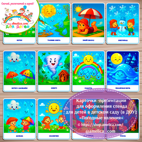 Демонстрационные карточки — презентации для оформления стенда для детского сада «Погодные явления»Демонстрационные карточки — презентации для оформления стенда для детского сада «Погодные явления»