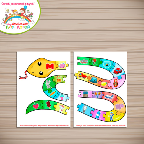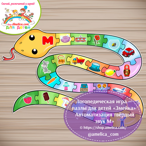Логопедическая игра — пазлы для детей «Змейка» — Автоматизация твёрдый звук М