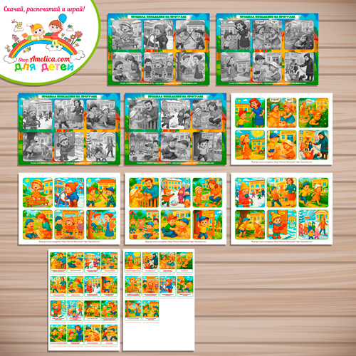 В наборе 4 игровых фона и 24 карточки на 8 листах формата А4 + карточки на 2 листах с описанием.