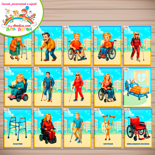 Демонстрационные карточки — презентации для оформления стенда для детского сада «Люди с ограниченными возможностями здоровья»