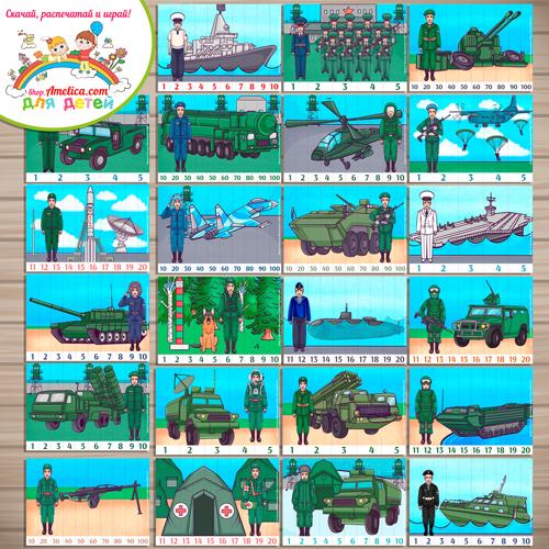 Учим счёт до 100, математические пазлы — разрезалки «АРМИЯ РОССИИ: Защитники Отечества»