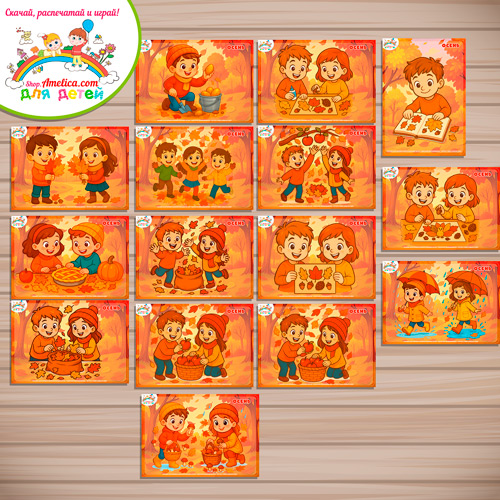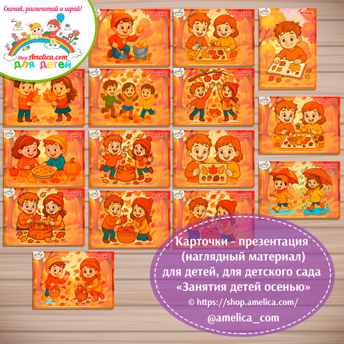 Карточки — презентация (наглядный материал) для дошкольников «Занятия детей осенью» скачать и распечатать