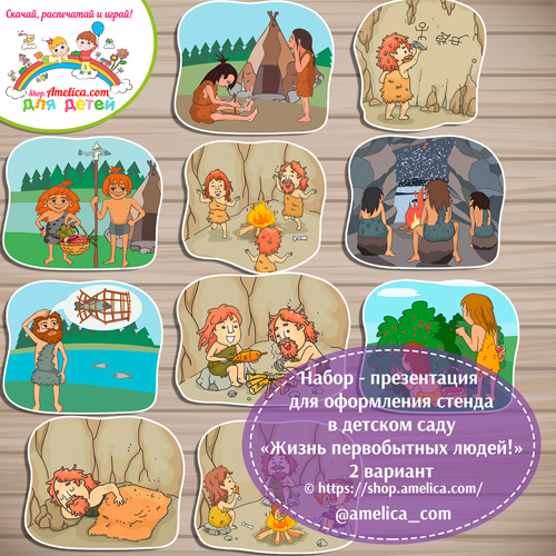Набор — презентаций для оформления стенда «Первобытный человек» -2 вариант картинки скачать и распечатать