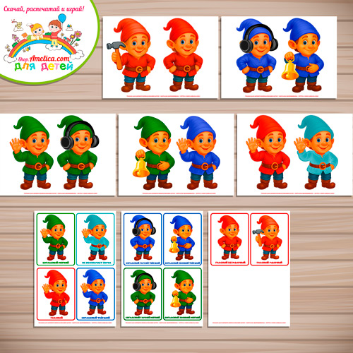 Распечатайте материалы игры на цветном принтере на плотной бумаге, заламинируйте материалы. Вырежьте героев и карточки.
