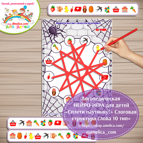 Логопедическая НЕЙРО-ИГРА для детей «Сплети паутинку!» Слоговая структура слова 10 тип — 24 слова»Логопедическая НЕЙРО-ИГРА для детей «Сплети паутинку!» Слоговая структура слова 10 тип — 24 слова»