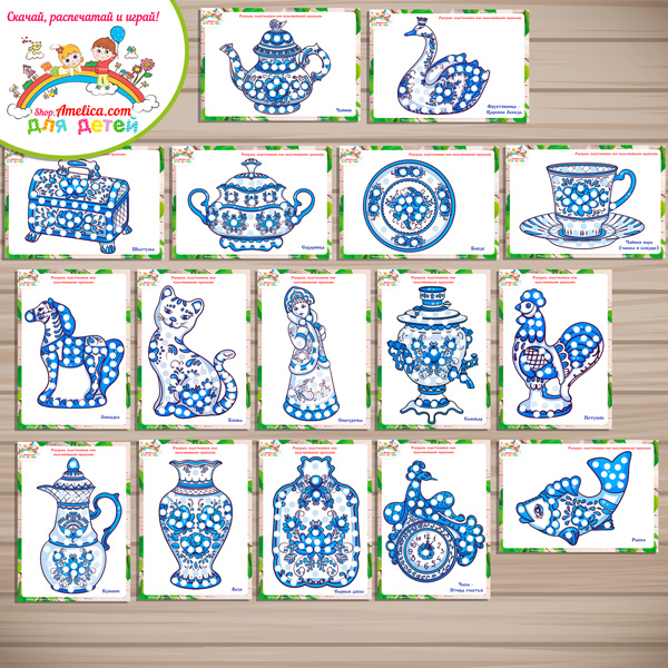 Материал входит в Тематический комплект «Гжельская роспись (Гжель)».