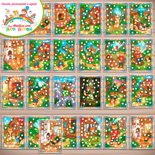 Материал на 20 листах формата А4 — произвольные сюжеты по сказке «Кот петух и лиса».