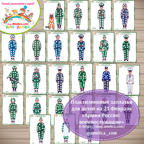 Пластилиновые заплатки к 23 Февраля — Дню Защитника Отечества «Армия России: военнослужащие»БОЛЬШОЙ тематический комплект игр и обучающих материалов «Армия России».