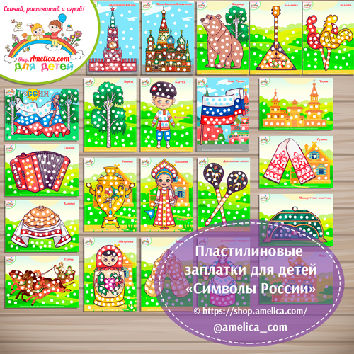 Пластилиновые заплатки — аппликации «Символы России», шаблоны для пальчикового рисования распечатать