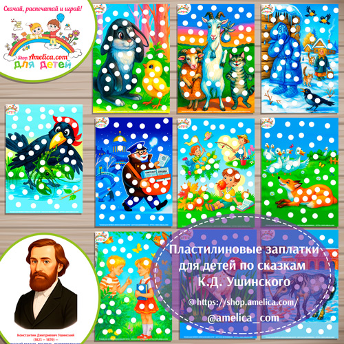 Пластилиновые заплатки по сказкам К.Д. Ушинского или шаблоны для пальчикового рисования