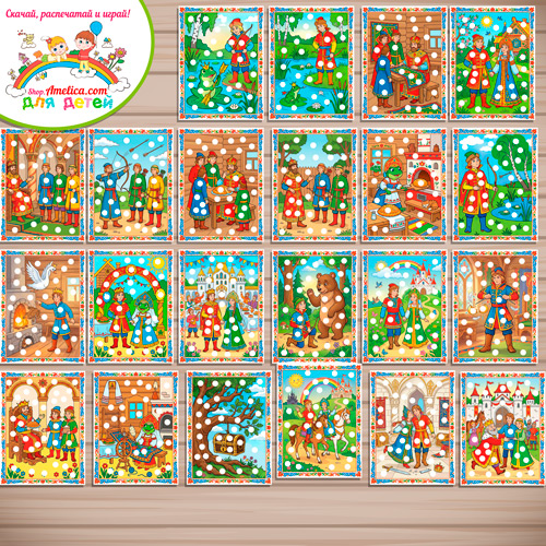 Материал на 22 листах формата А4 — произвольные сюжеты по сказке «Царевна — лягушка».