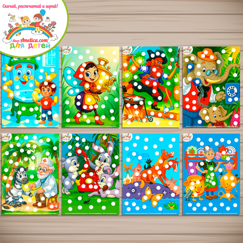 Пластилиновые заплатки по произведениям К.И. Чуковского или шаблоны для пальчикового рисования