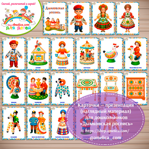 Карточки — презентации (наглядное пособие) «Дымковская игрушка» для детей скачать