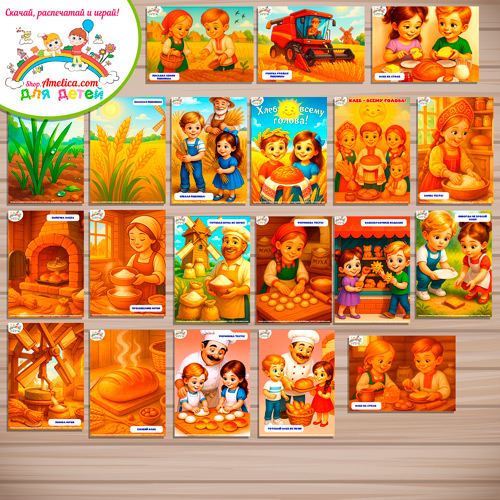 Данный набор содержит 20 карточек с иллюстрациями на тему — Хлеб всему голова.