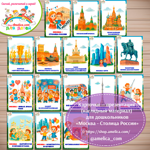 Карточки — презентации (наглядное пособие) «Москва — Столица России» для детей скачать