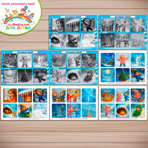 Развивающее теневое лото для дошкольников «Что бывает зимой? Признаки зимы».