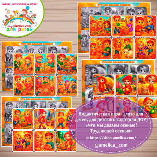 Развивающее теневое лото для дошкольников «Что мы делаем осенью? Труд людей осенью»
