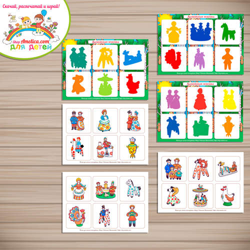 Дидактическая игра — теневое лото «Дымковская игрушка» для детей шаблон скачать для печати