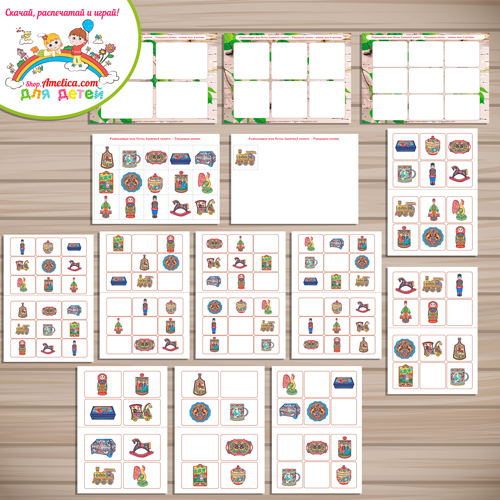 Откройте PDF файл и изучите его. Листы с чистыми игровыми полями на 4, 6 и 9 карточек, а так же листы с игровыми карточками распечатайте в формате А4.