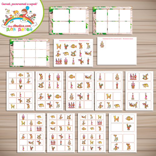 Откройте PDF файл и изучите его. Листы с чистыми игровыми полями на 4, 6 и 9 карточек, а так же листы с игровыми карточками распечатайте в формате А4.