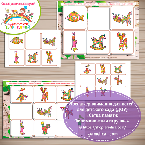 Тренажёр внимания для детей «Сетка памяти — Филимоновская игрушка»