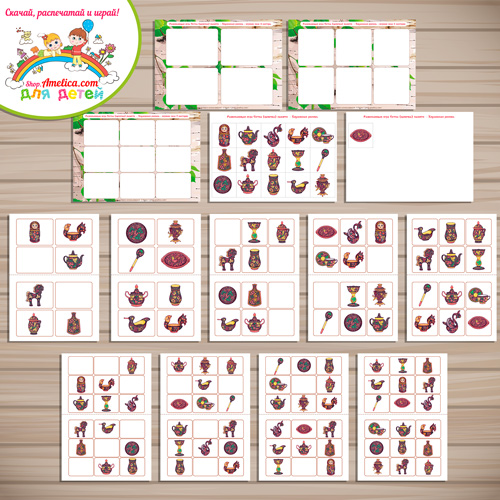 Откройте PDF файл и изучите его. Листы с чистыми игровыми полями на 4, 6 и 9 карточек, а так же листы с игровыми карточками распечатайте в формате А4.