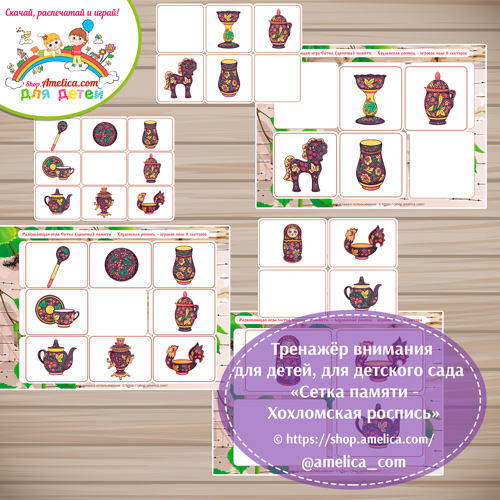 Что входит в комплект игры тренажёр внимания для детей «Сетка памяти — Хохломская роспись«