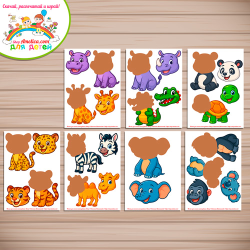 Дидактическая игра на липучках для малышей «Чья это мордочка?» — экзотические животные скачать шаблон для печати