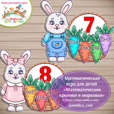 Математическая игра "Кролики - морковки" примеры - сложение и вычитание в пределах 10